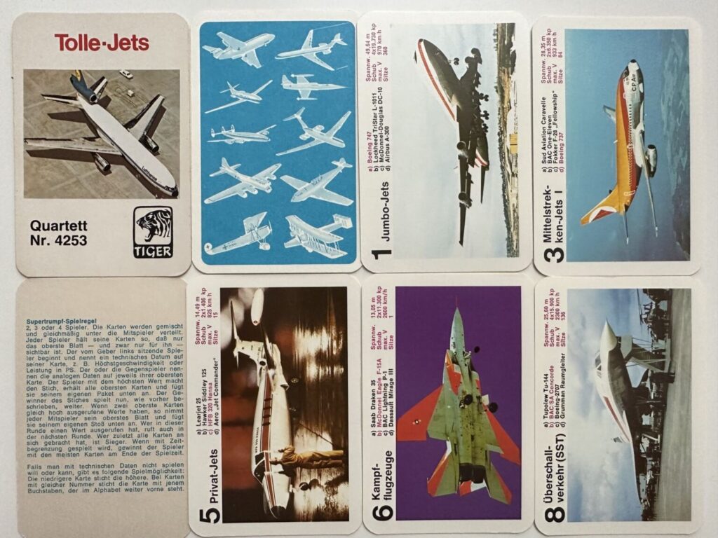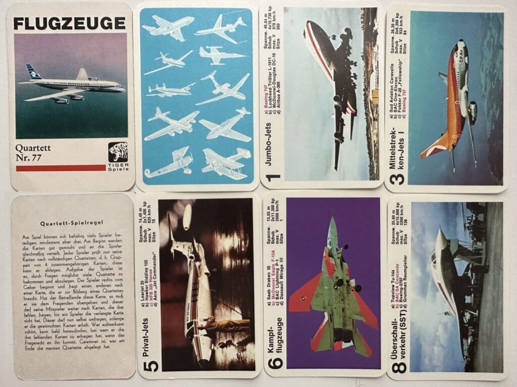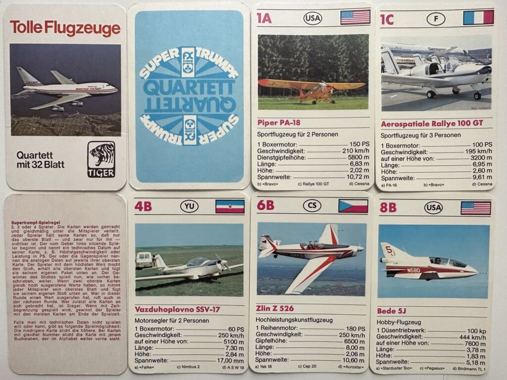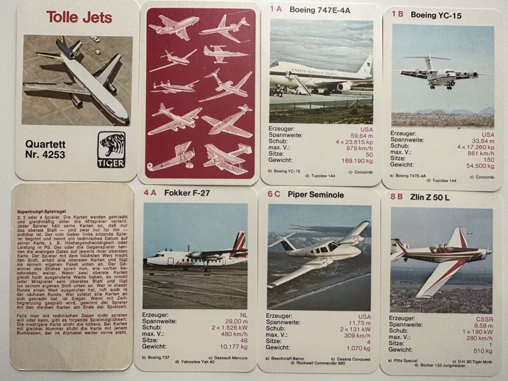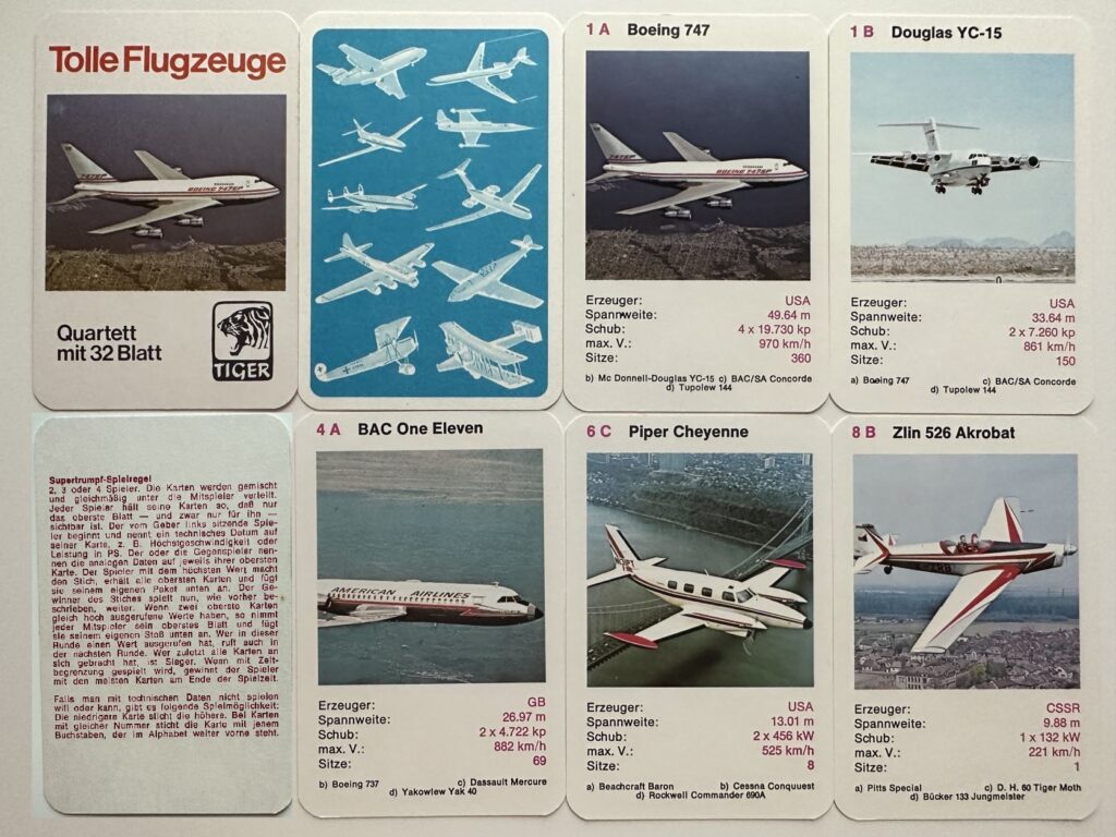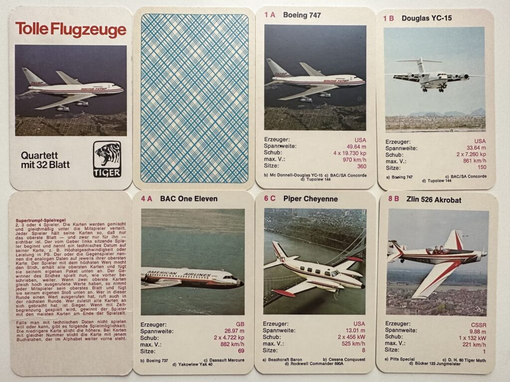 Aber vielleicht macht das auch den Reiz aus. Deshalb habe ich mal ein paar Flugzeug Quartette gekauft und versucht, diese zu analysieren. Informationen habe ich auch im Quartettportal.at und auf toysfromthepast.blogspot.com gefunden und eingearbeitet.